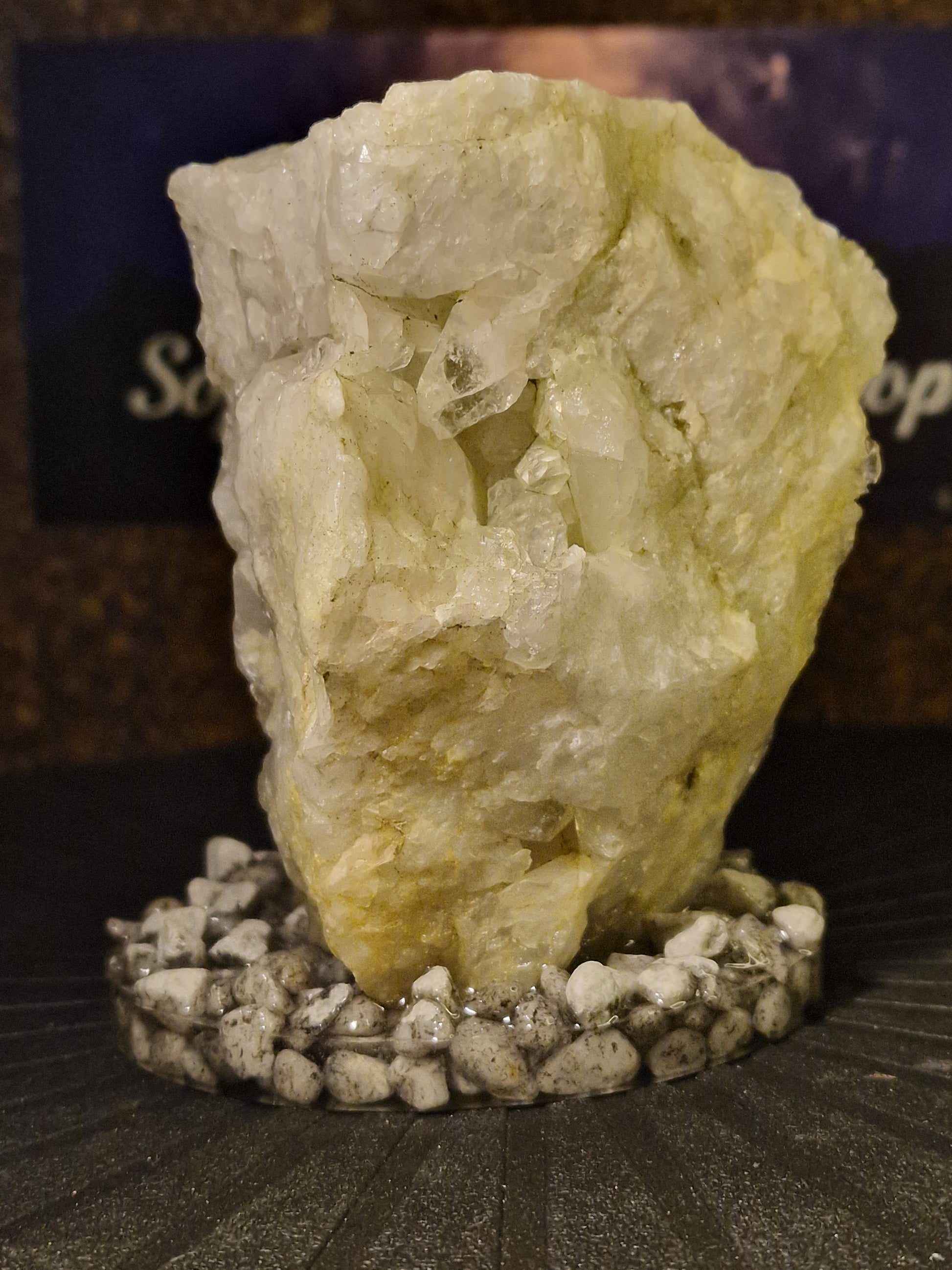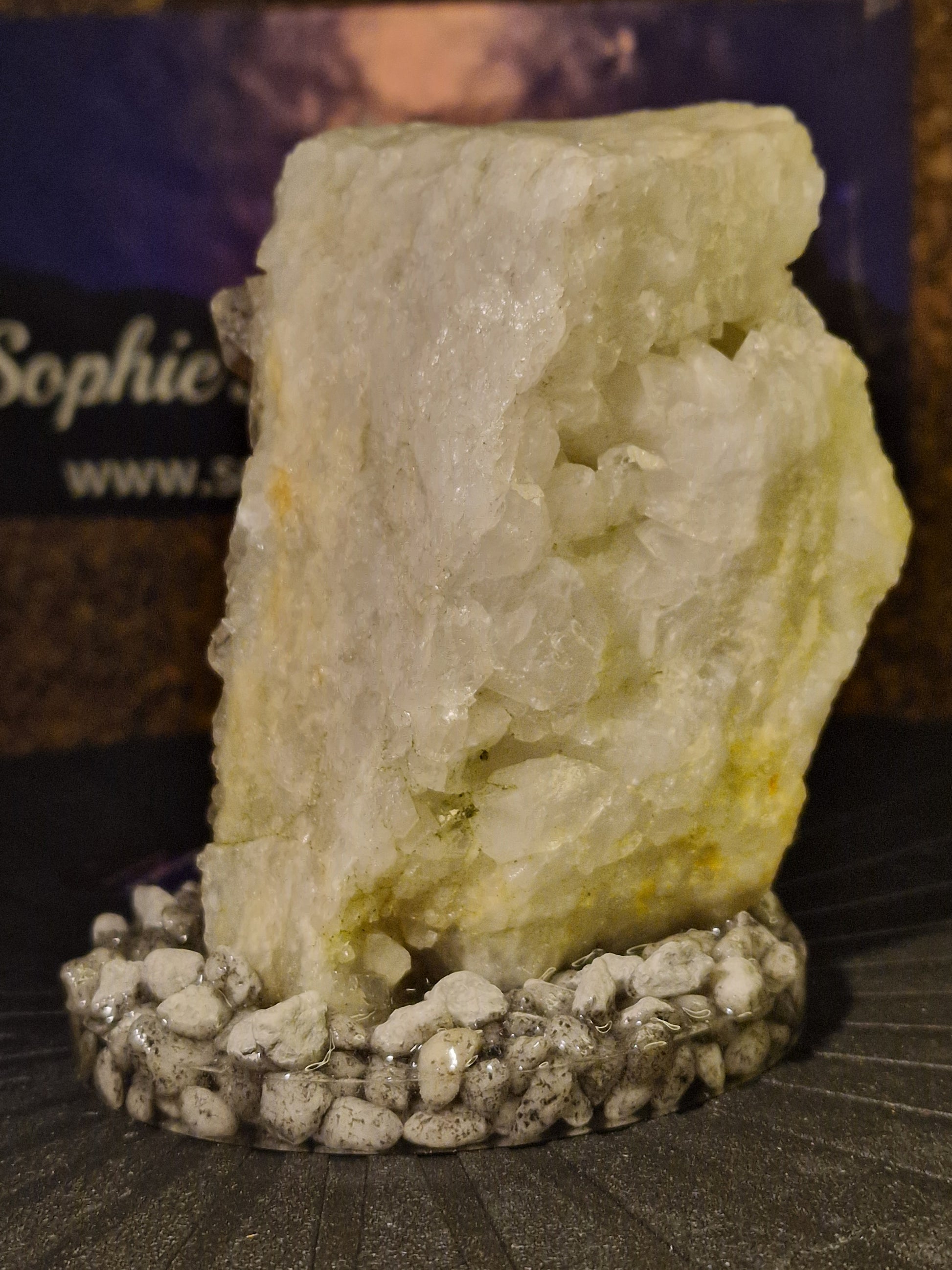 Rå Kvarts på Håndlavet Resin- og Naturstensbase – 770 g